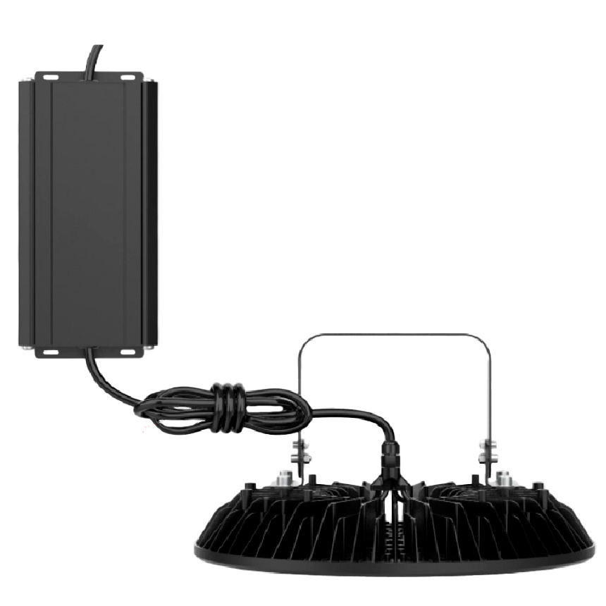Su cuerpo de aluminio inyectado a presión proporciona una alta resistencia a la corrosión, mientras que el difusor de policarbonato retardante a la flama asegura protección y durabilidad. Incorpora una óptica curva de 120°, ideal para una distribución uniforme de la luz, además de un sistema dimeable de 1–10 V y driver electrónico multivoltaje (120–277 V) que optimizan su eficiencia energética y flexibilidad de instalación.
