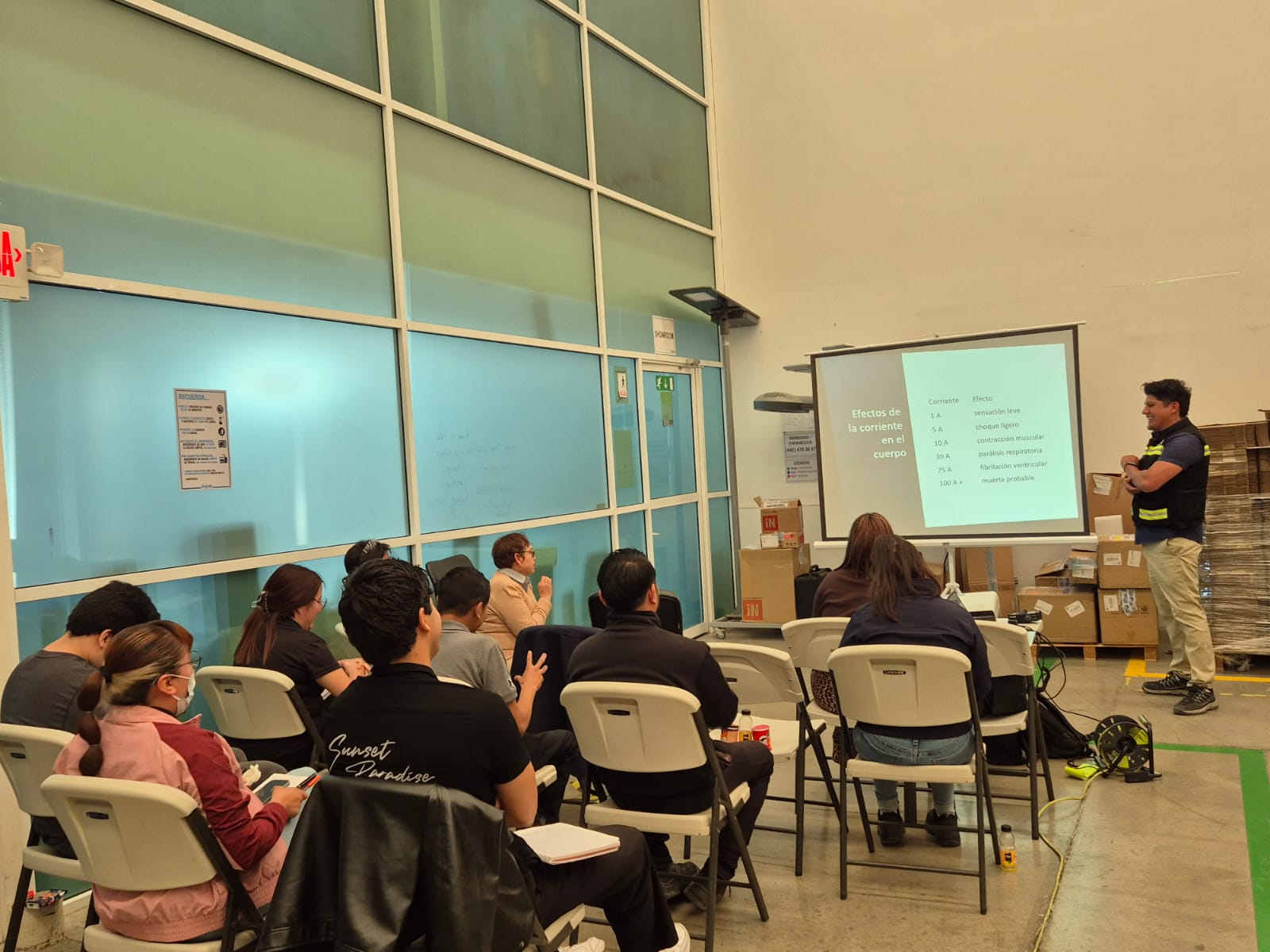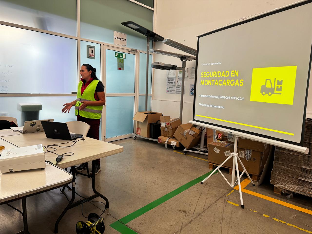 Durante estos días se impartieron distintos cursos enfocados en el manejo seguro de montacargas, la prevención de riesgos eléctricos y la seguridad en trabajos en alturas, áreas clave para el desarrollo seguro de las actividades dentro de la empresa.